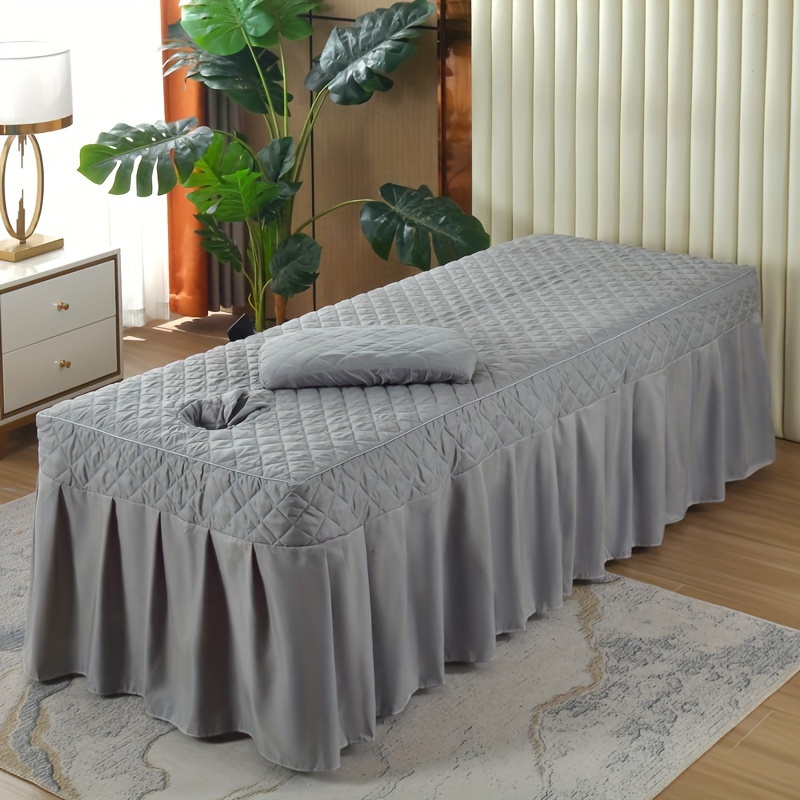 TEMU 러플 스커트가 달린 퀼팅 매트리스 보호 커버, 100% 폴리에스터, 기계 세척 가능, 짠 침대 커버 - 녹색