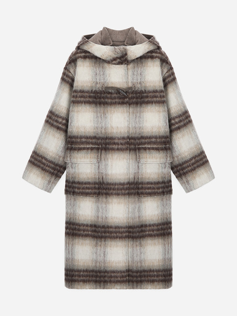 [써스데이 아일랜드] 체크 후드 더플 롱 코트_T258MCT235W