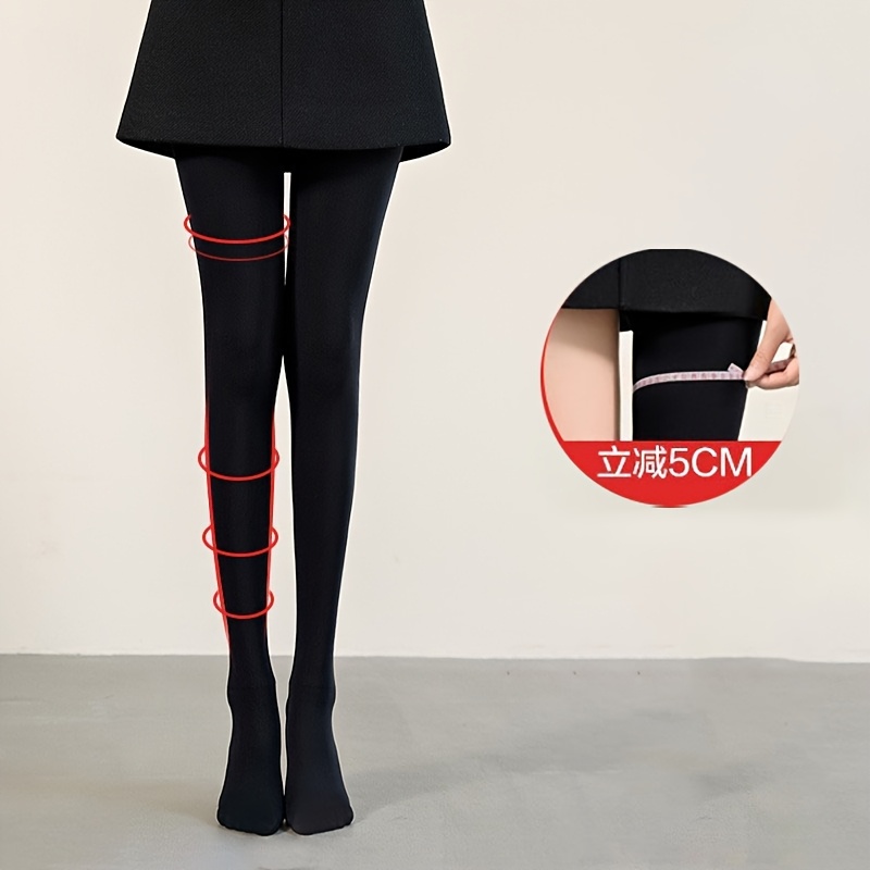 TEMU 여성용 가을-겨울용 허벅지까지 타이트핏 | 블랙, 얇은 플리스, 다리, 세탁기 사용 가능