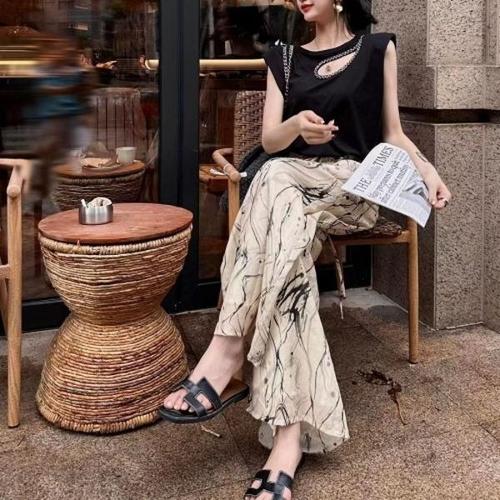 [블로썸스틸] SD-240552 페인팅 밴딩 여름 쿨 통바지