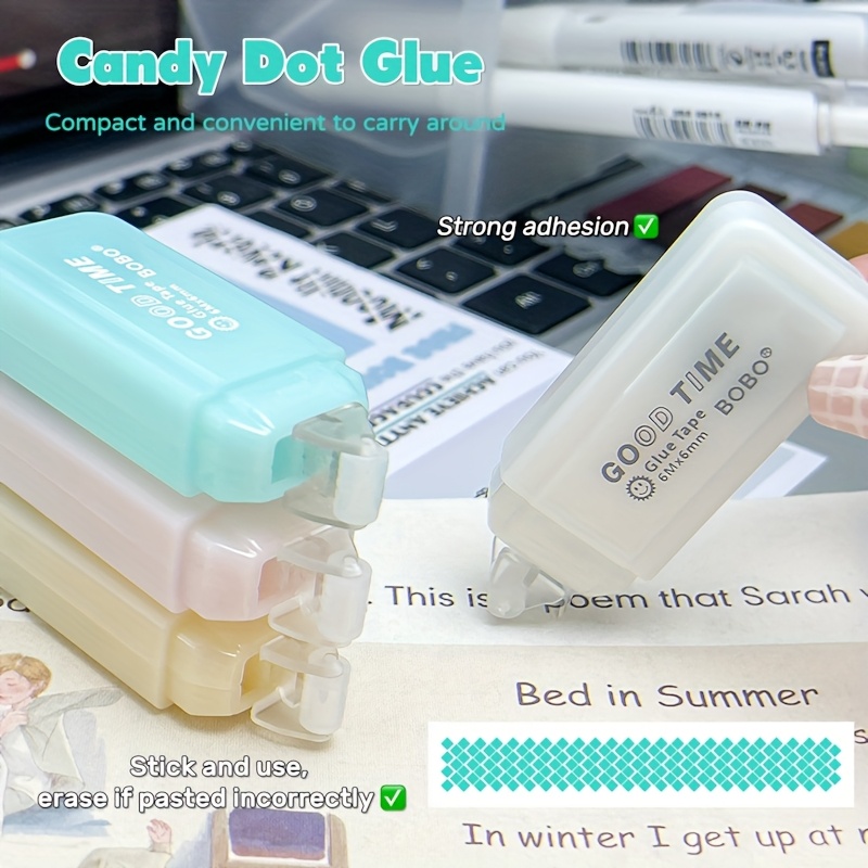 TEMU 1P/4개 양면 접착 펜, 대용량, 잔여물 없음 접착제, 스크랩북, 공예, 신학기 용품, 사무용 문구, 불렛 저널 아트 프로젝트에 적합, 공예 용품 | 생생한 펜 디자인 | 내구성 좋은 플라스틱 바디