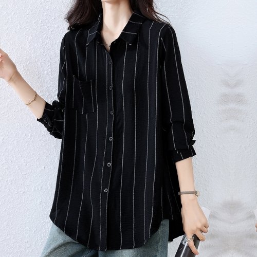 [블랙퀸] 러티 스트라이프 롱 셔츠 blk004042