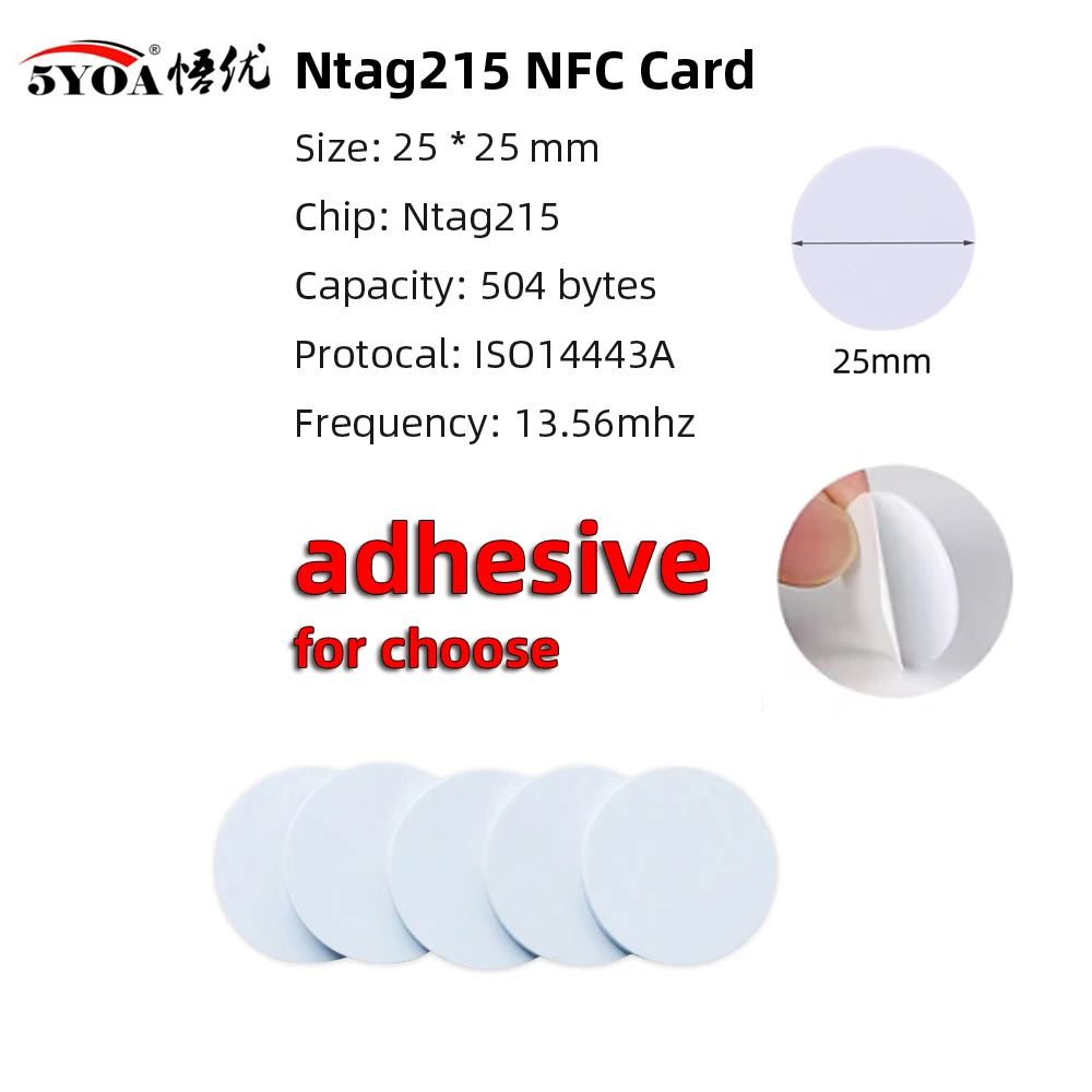 5YOA 5/10/50pcs NFC Ntag215 코인 키 13.56MHz 215 카드 라벨 RFID 울트라라이트 라벨 25mm 직경 원형 미니 카드
