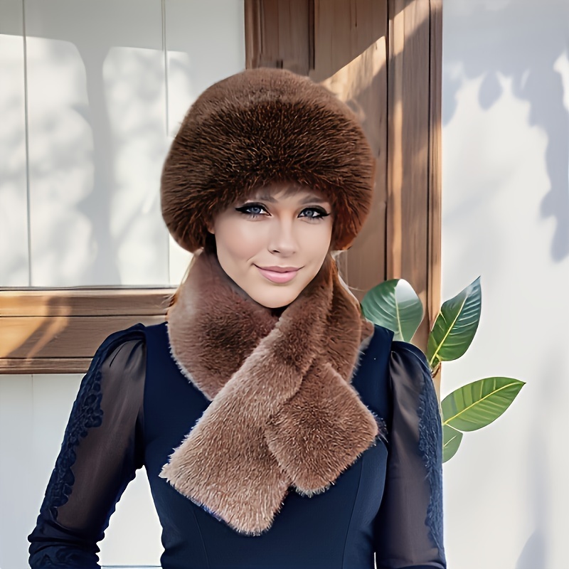 TEMU 2개 세트 두꺼운 보온 모피 모자와 스카프, 폴리에스터 겨울 귀마개 비니 버튼 클로저, 몽골 스타일 패션 모자, 단색 핸드워시 - 가을/겨울 도시 시리즈