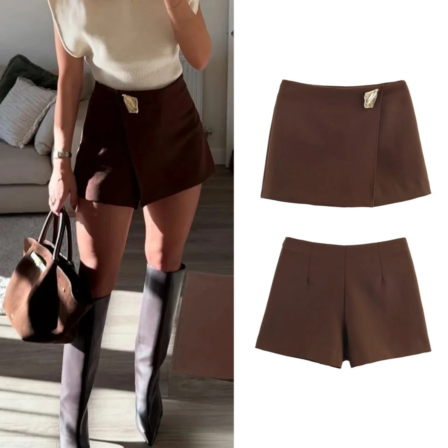 여성 미니 스커트 가을 겨울 솔리드 컬러 비대칭 골드 장식 여성 심플 반바지 캐주얼 패션 스커트 스트리트웨어