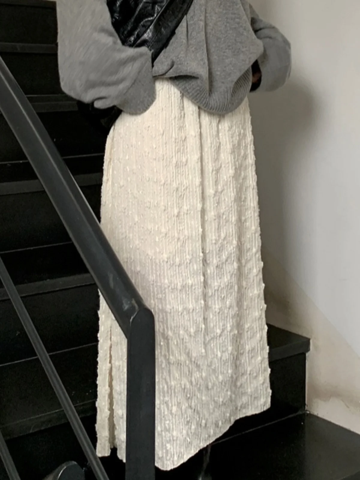 우아한 롱 플로킹 하프 스커트 여성용 2025년 초봄 하이웨이스트 A라인 한국 스타일 출퇴근용 단색 다용도 동화 같은