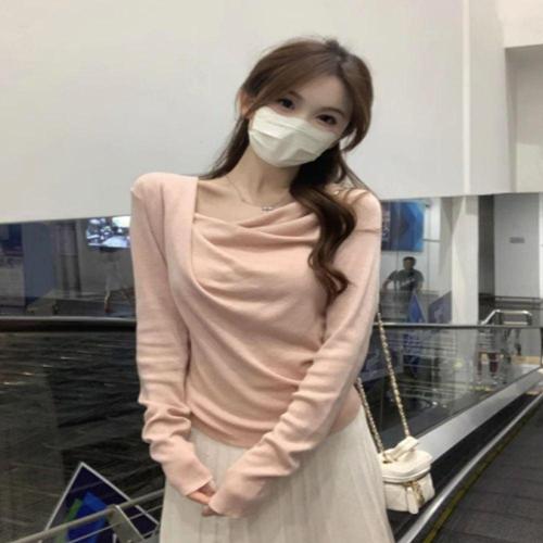 여성 4컬러 은은한 곡선라인 드레이프넥 니트티셔츠 WFL0A2E