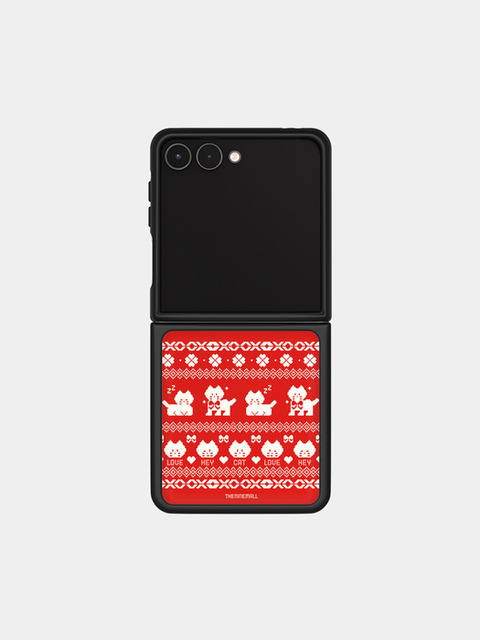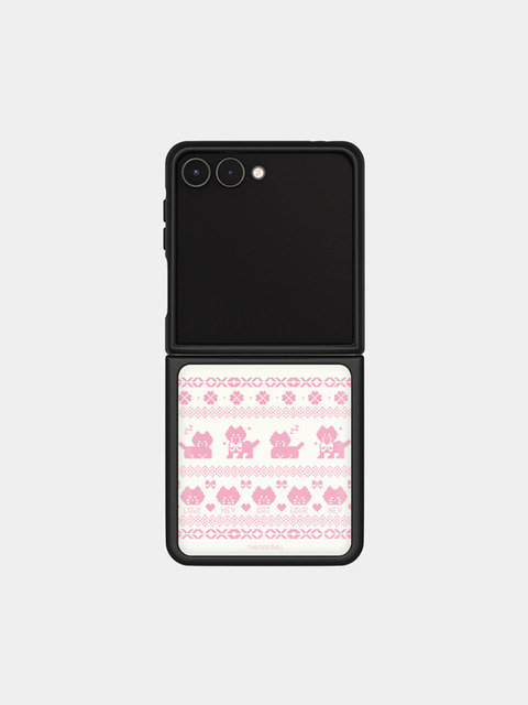 [더나인몰] hey cat knit pattern Z플립 블랙 에폭시 범퍼케이스