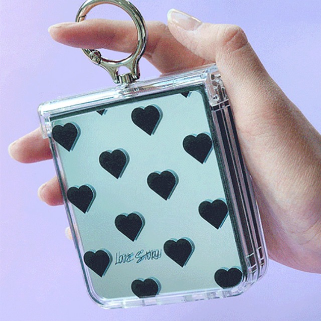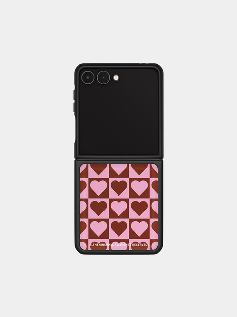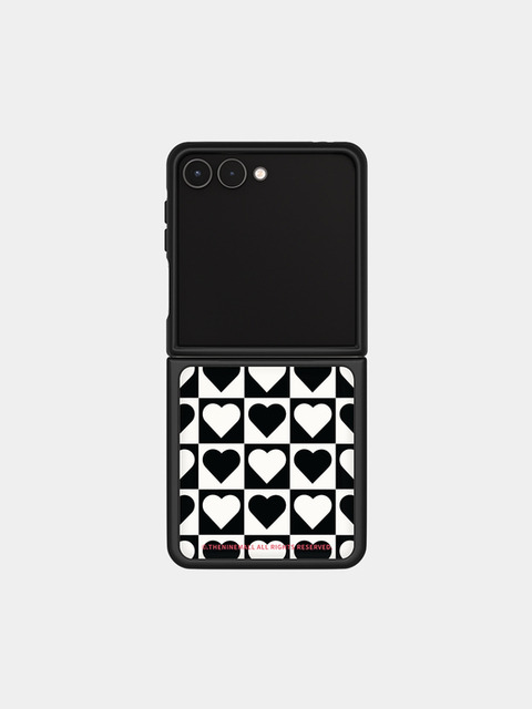 [더나인몰] heart checkerboard Z플립 블랙 에폭시 범퍼케이스