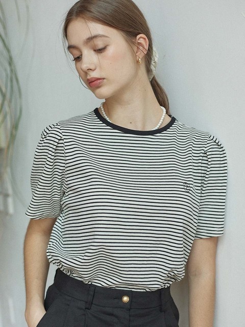 [논로컬] 스트라이프 퍼프 슬리브 티셔츠 - 크림 스트라이프