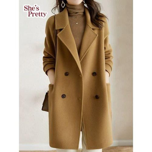 TEMU 여성용 무릎 길이의 고급 디자인 긴팔 트렌치 코트, 슈트 칼라 및 더블 브레스트 캐주얼