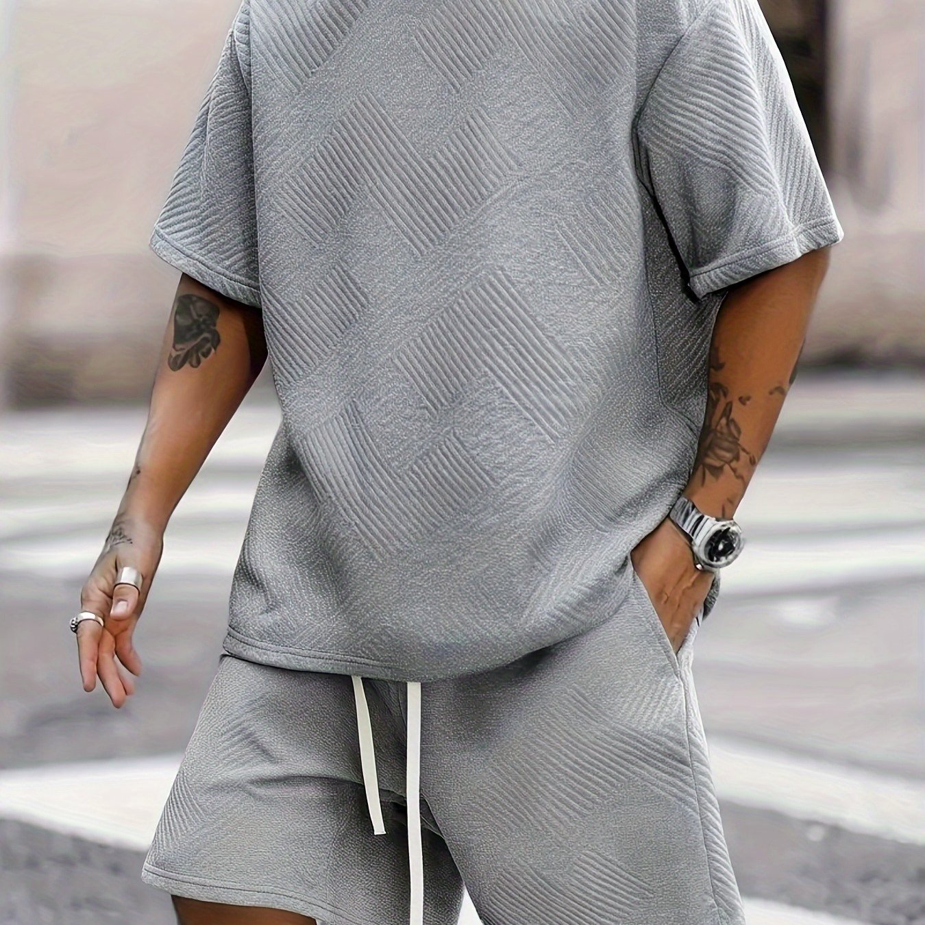 TEMU 남성 캐주얼 운동용 2피스 세트: 반팔 티셔츠 & 드로스트링 반바지 - 블랙, 고스트레치 소재, 편안한 여름 의상, 포켓 포함|남자반바지|반팔티|남성반바지