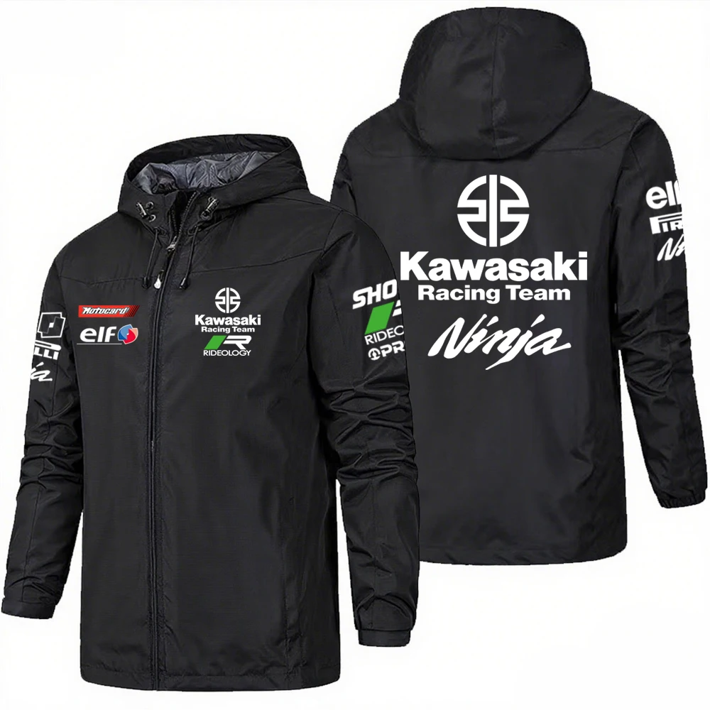 가와사키 레이싱 로고 남성용 봄, 가을 후드 윈드 브레이커 야외 방풍 및 방수 등산 의류