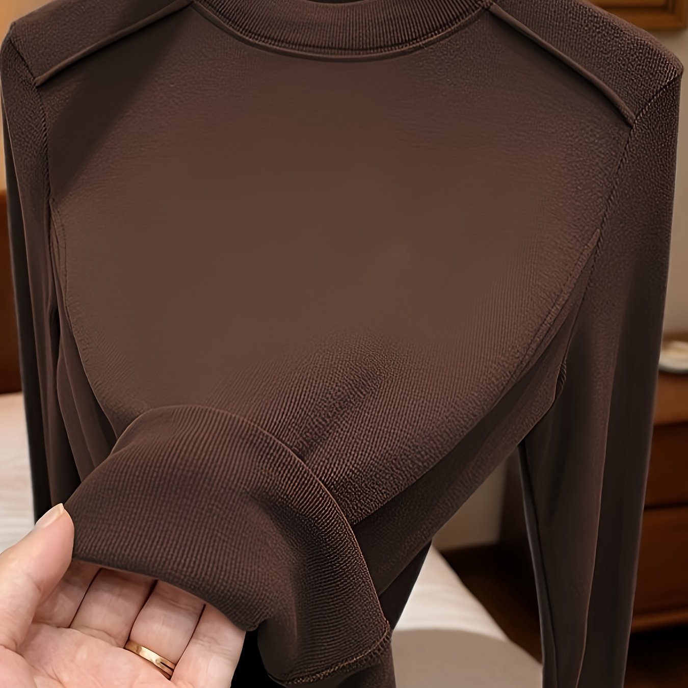 TEMU 여성용 하이넥 티셔츠 - 겨울용 따뜻한 솔리드 컬러 캐주얼 블라우스, 중간 신축성 기계 세탁 가능한 레이어링용 탑, 가을 & 겨울 워드로브 필수품 (비-) - 재판매용 브랜드 가능