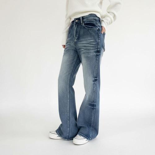 |CHP93C2|여성용 빈티지 워싱 부츠컷 청바지 봄