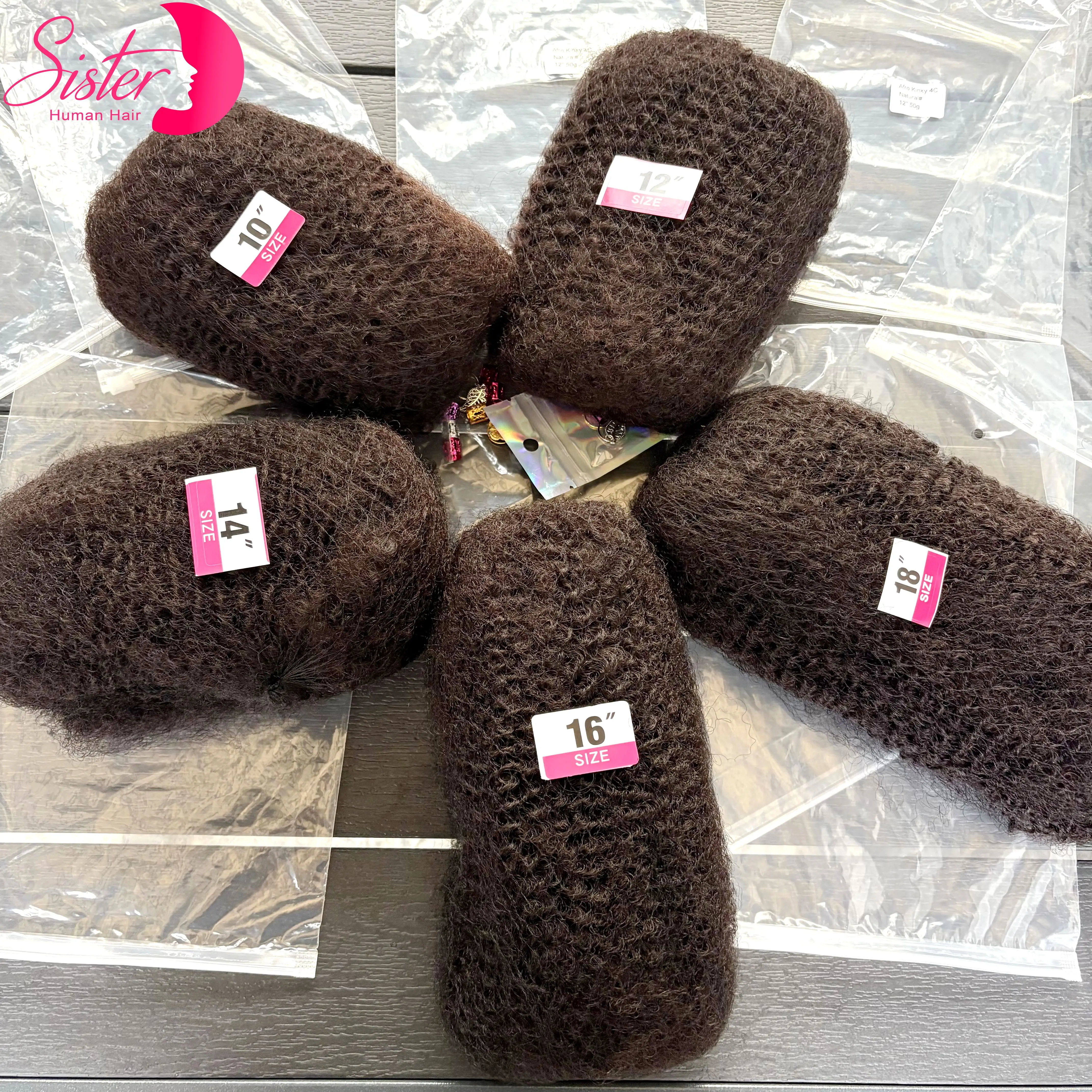 10-18인치 4C 아프로 킨키 인모 벌크 30g/팩 100% 인모 부드러운 아프로 킨키 벌크 인모 락스 연장/트위스트/브레이드용
