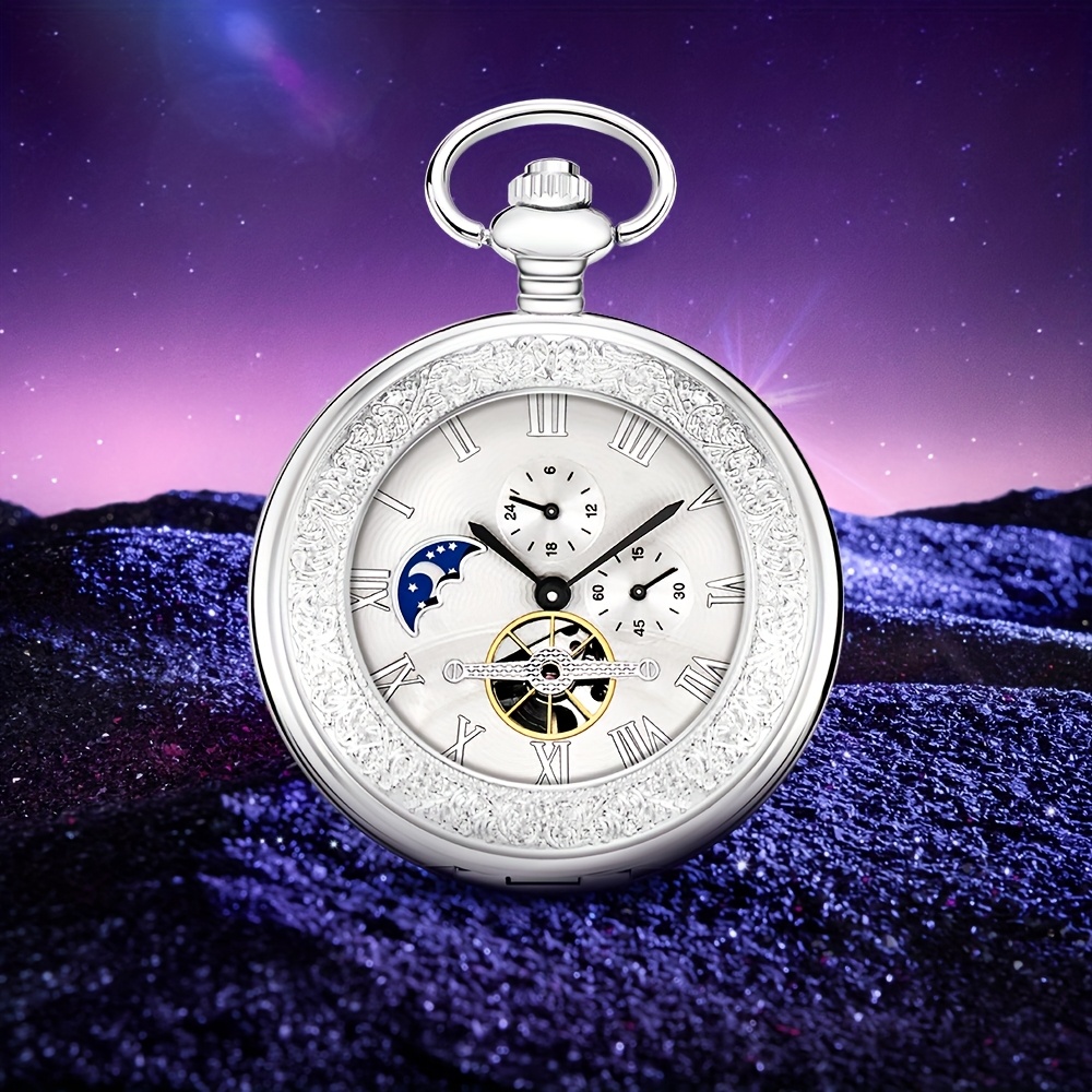 TEMU 남성용 빈티지 기계식 포켓워치 - 천체 태양 달 별 다이얼, 로마 숫자 & 두꺼운 체인, 크리스마스 생일 기념일 특별한 날을 위한 우아한 선물, 클래식 시계, 내구성 있는 디자인