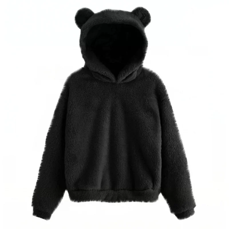 여성용 긴팔 토끼 귀 후드 맨투맨, 귀여운 플러시 따뜻한 캐주얼 후드티, 가을 겨울