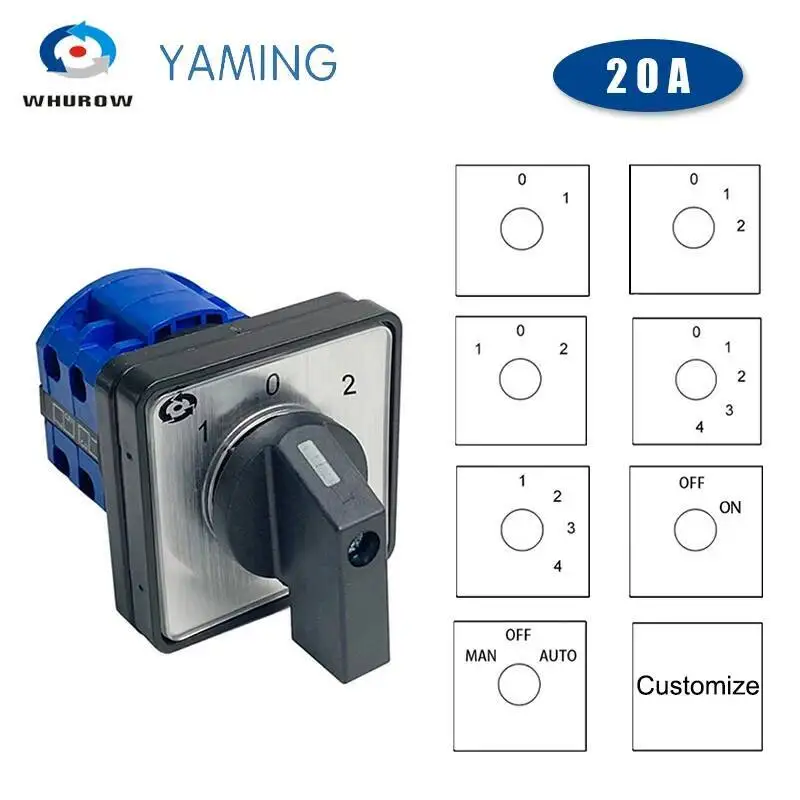 660V 20A 전기 8단자 LW26-20/2 LW28-20 YMW26 시리즈 실버 접점 로터리 전환 캠 스위치