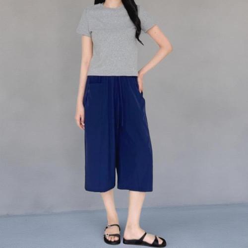 |CCP8DAA|여성용 다채로운 폴리 사이드포켓 조절끈 7부 팬츠