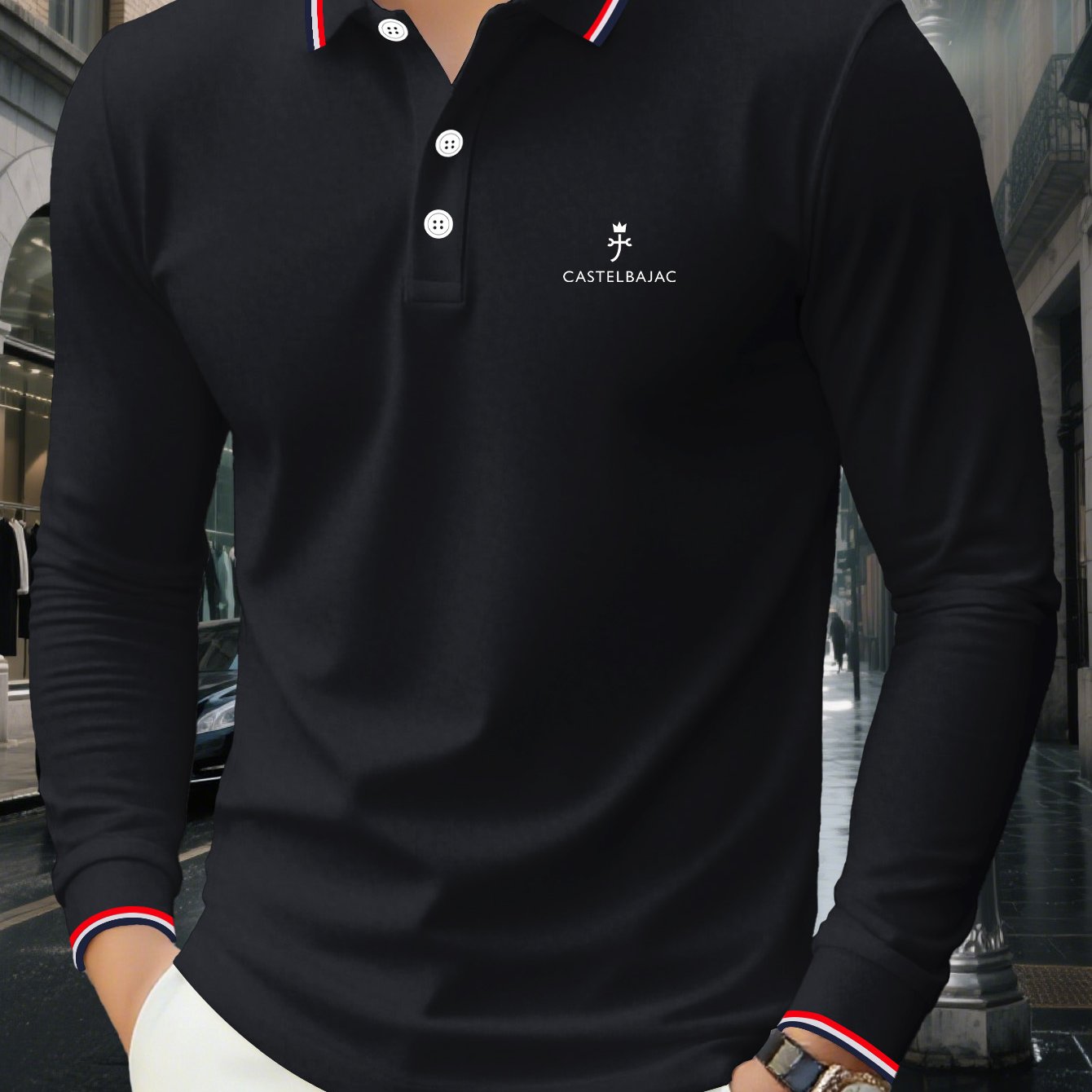 TEMU CASTELBAJAC 남성용 긴팔 셔츠 - 레드 액센트 칼라, 버튼 프론트 플래킷, 레귤러 핏 골프 & 포멀 셔츠 (비즈니스 캐주얼, 사무실, 야외용) - 통기성 좋은 여름 포멀 복장 - 모델 KS4120, 골프 셔츠, 오피스 웨어, 기하학적 패턴|골프웨어