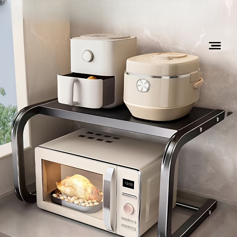 TEMU 2단 조절 가능한 전자레인지 스탠드 - 오븐 및 전자레인지용 견고한 카운터탑 정리대, 공간 절약형 스토리지 랙, 쉬운 접근 디자인, 주방 카운터탑에 완벽, 주방 카운터탑 정리대 | 슬림한 메탈릭 마감 | 내구성 있는 주방 선반