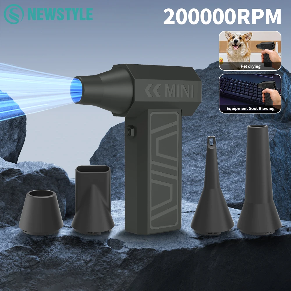휴대용 터보 공기 송풍기 200000RPM 3단 바람 충전식 폭력 팬, 먼지 제거용 자기 노즐 5개 포함 멀티 장면