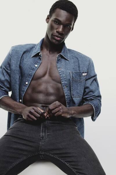 남성 레귤러핏 클래식 블랙 워시 데님 셔츠 4RD765G-57L 4RD765G57L