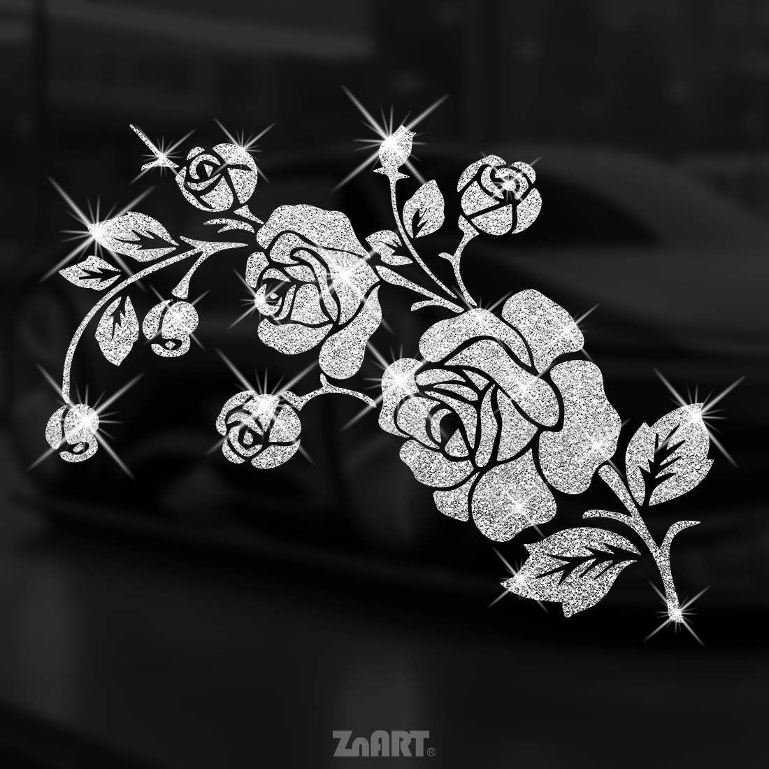 TEMU 1개 ZN ART 글리터 장미 플로럴 비닐 스티커 - 핑크/구리색/블루, 반짝이는 자동차, 트럭, , 노트북, 창문, 거울 장식 - 쉽게 붙이고 떼기, 잔여물 없음 - 우아한 차량 & 기기 액세서리, 반짝이 질감, 무잔여 접착