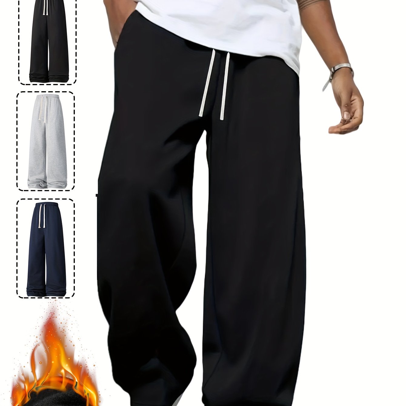 TEMU 남성용 겨울 안감 바지 1개, 루즈한 핏 & 중간 허리 주머니 - 추운 날씨에 적합한 따뜻한 캐주얼 바지, 기계 세탁 가능 (블랙/그레이/블루)|냉장고바지|남자바지|바지