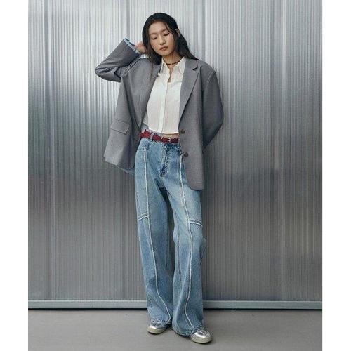 [하프클럽/진마니아]진청워싱 허리스판 본딩기모 더블컷팅 일자 데님 팬츠