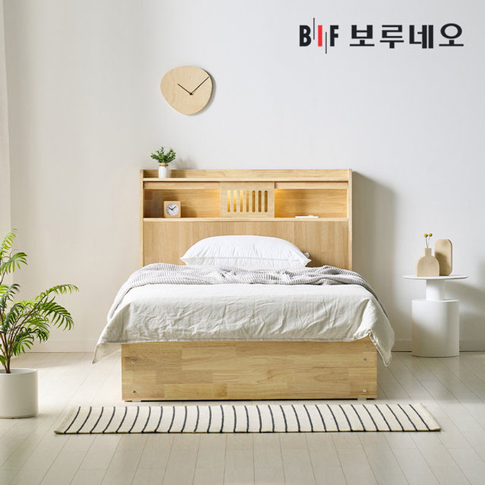 보루네오 BIF 제뮤Po 3서랍 고무나무 원목 침대 LED 수납 프레임 SS