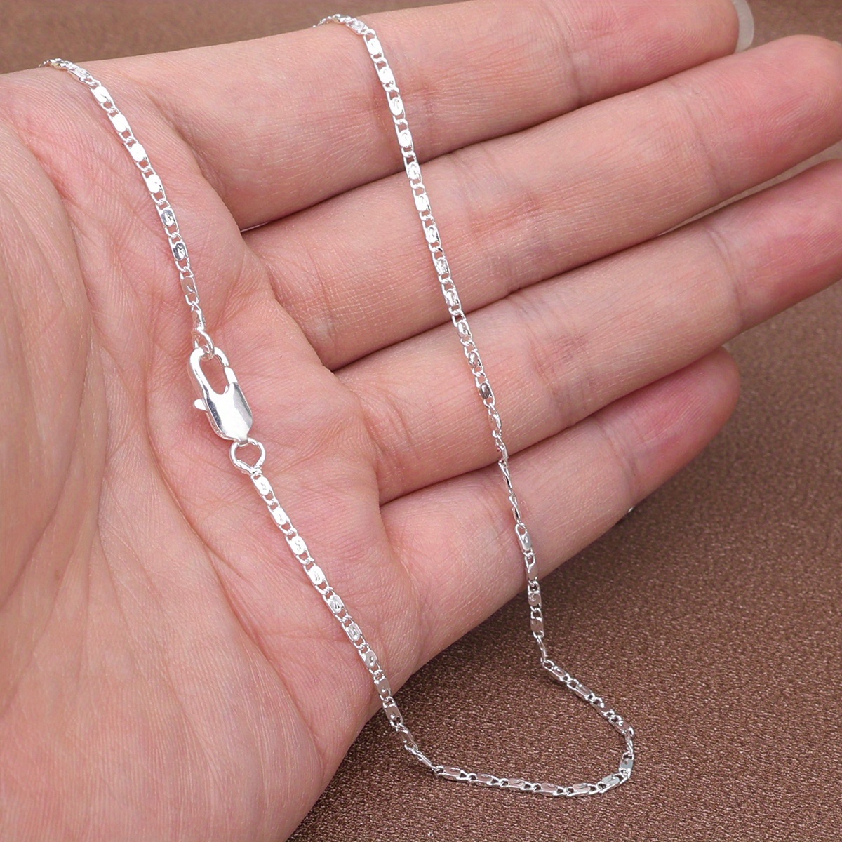 TEMU 1pc 우아한 925 실버 플레이트 플랫 체인 목걸이 스타 펜던트 - 2mm 구리 플레이트, 16-30인치, 일상 착용, 파티 및 선물, 축제 장식품|우아한 목걸이|내구성 장식품