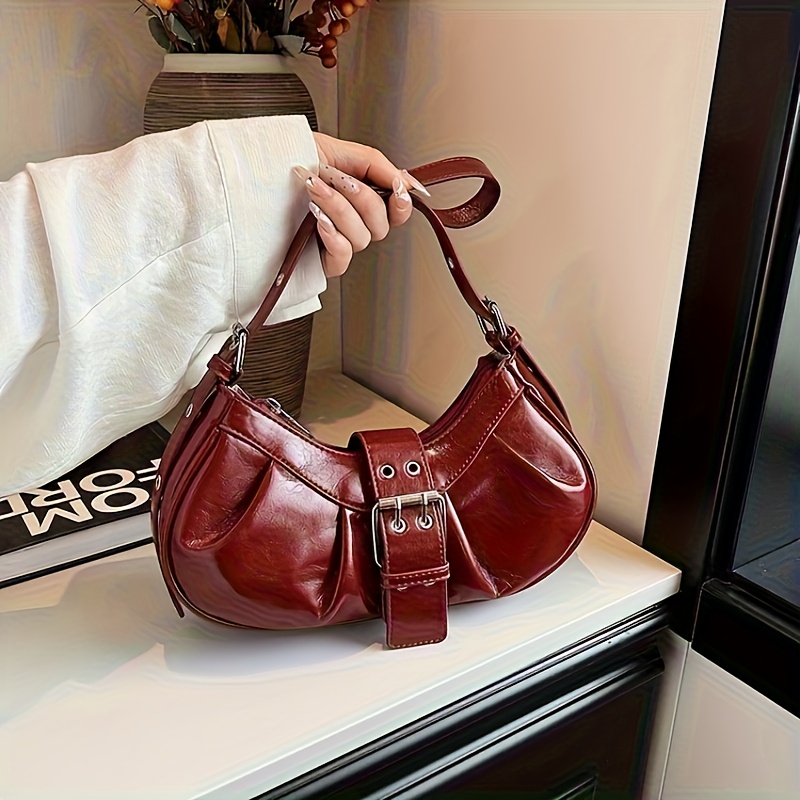 TEMU KRYEON 여성용 고딕 Y2K 빈티지 숄더백 & 토트 - 버건디/블랙 록 스타일 핸드백, 골드톤 리벳 장식, 조절 가능한 스트랩 & 골드톤 하드웨어, 지퍼 클로저, 뮤직 페스티벌, 일상 사용 및 파티용, 여성용 핸드백, 여성용 가방, 지갑, 여성용 핸드백, 여성용 지갑과 핸드백, 지갑, 여성용 핸드백, 지갑 가방, 여성용 핸드백, 핸드백