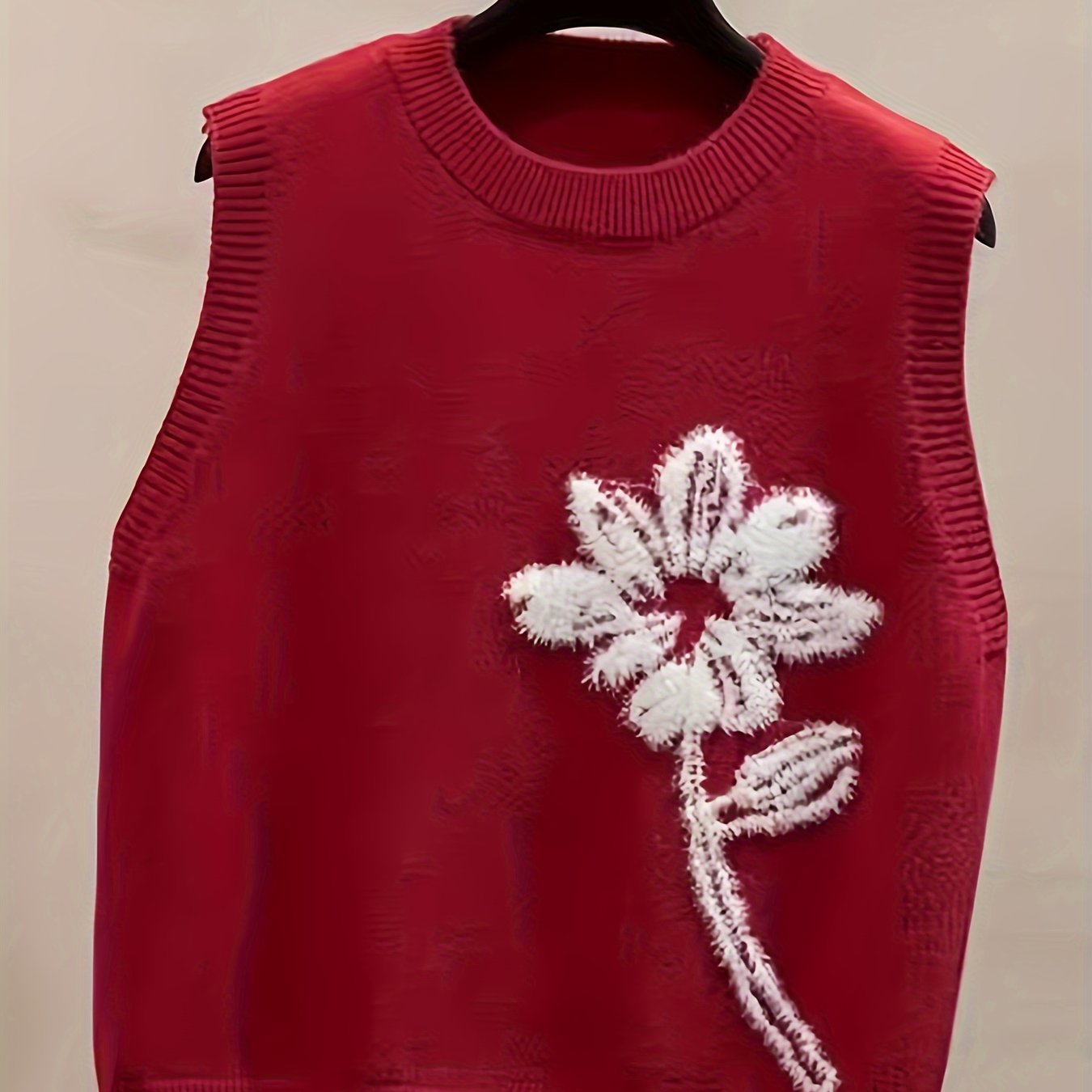 TEMU 우아한 민소매 라운드넥 베스트 - 플로럴 프린트, 리치 레드 컬러, 봄/가을 캐주얼 & 포멀 레이어링 아이템 (세탁기 사용 가능)