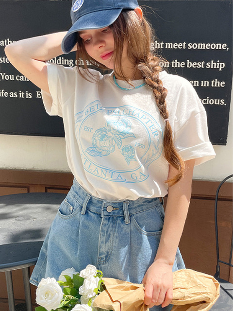 [꼼파뇨] [20수] DTP Peony bloom 반팔티 화이트