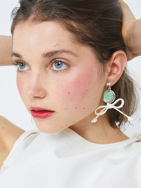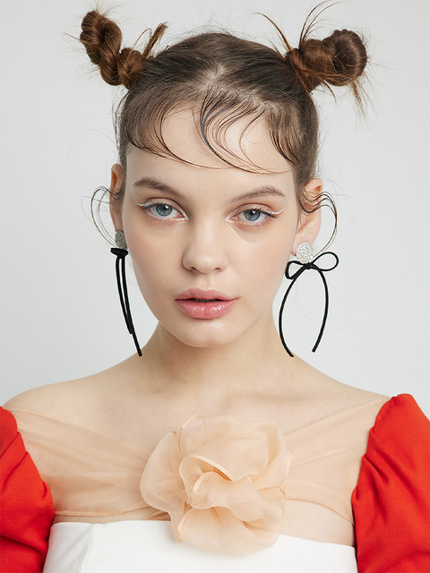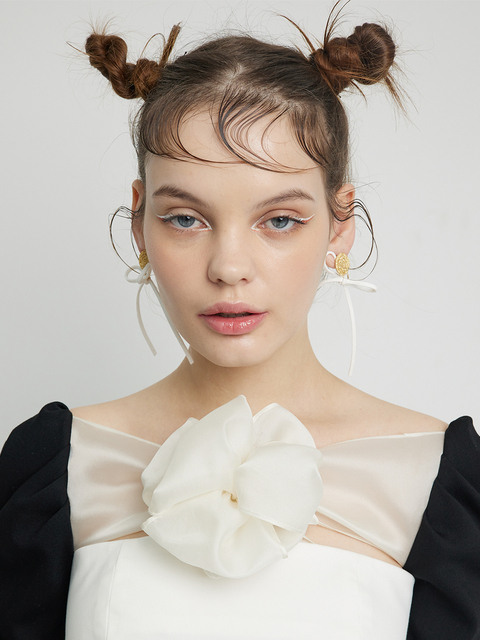 [러뷰이] Golden Peony Earrings with Big White Bow