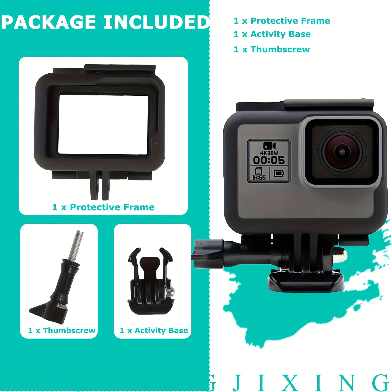 TEMU Hero 7/6/5 (2018) 블랙 액션 카메라 보호 케이스 - 베이스 및 스크루 포함, 내구성 있는 ABS+TPU 하우징, 충격 방지 디자인, 직접 충전, 사이클링, 스키, 블로깅, Hero 액션 카메라, 블로깅 액세서리, 세련된 디자인, 충격 방지 소재
