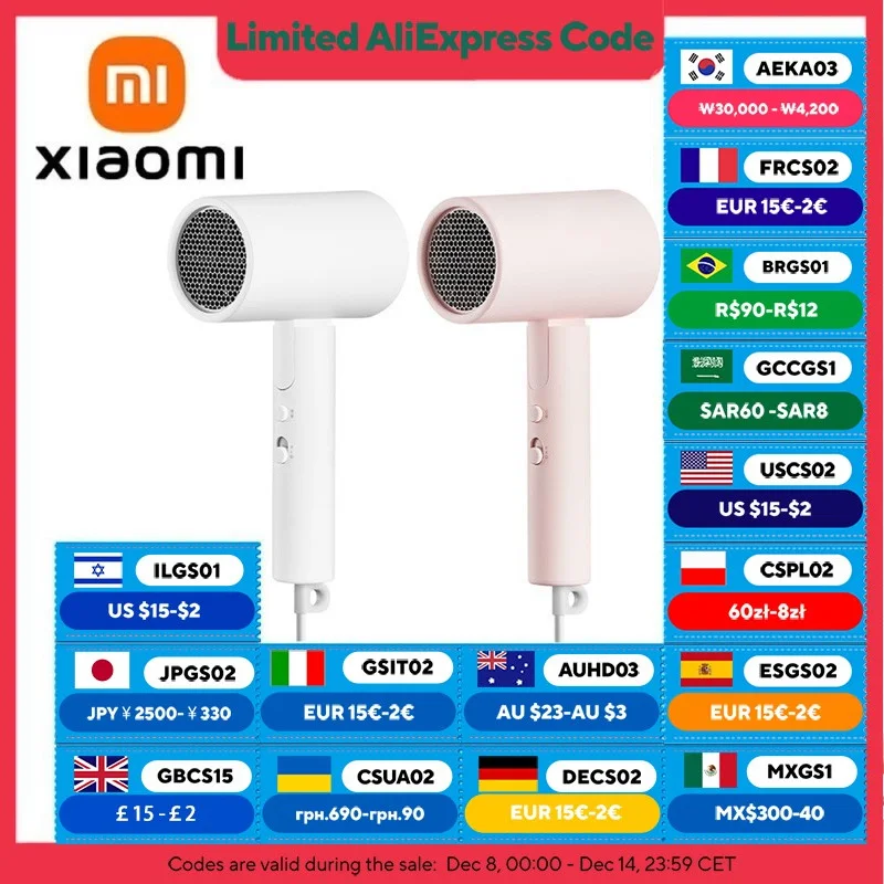 샤오미 미지아 휴대용 음이온 헤어 드라이어, H101, 빠른 건조, 전문 접이식 1600W, 5 천만 음이온 론, 가정 여행 헤어 케어