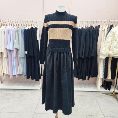 [샤틴]스트라이프 니트배색 원피스S244K957A_JK