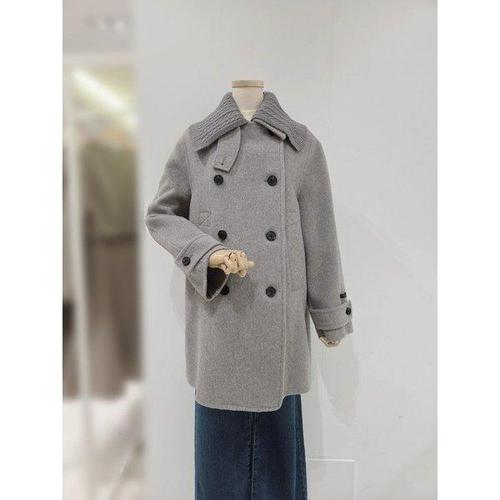 갤러리아_[SOUP] 니트 카라 탈부착 중기장 더블 코트 SBAHC31