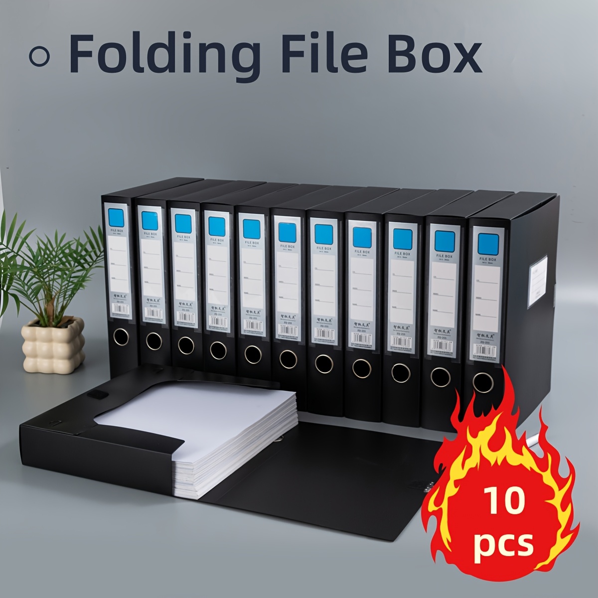 TEMU 10개 블랙 플라스틱 A4 파일 보관함, 라벨 탭 및 손잡이 포함, 고품질 문서 정리용, 사무실/가정용 내구성 아카이브 폴더, 서류 보호, 책상용 파일 정리함, 안전한 문서 보관, 세련된 디자인, 매끄러운 마감|A4용지
