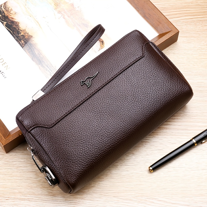 TEMU 1개 남성용 빈티지 인조 가죽 지갑, 손목 스트랩 포함, 비즈니스 스타일 긴 지퍼 지갑, 다중 카드 슬롯 - 블랙, 다크 브라운, 카드, 브라운 옵션