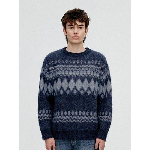 [비바스튜디오]노르딕 알파카 라운드 니트 - NAVY