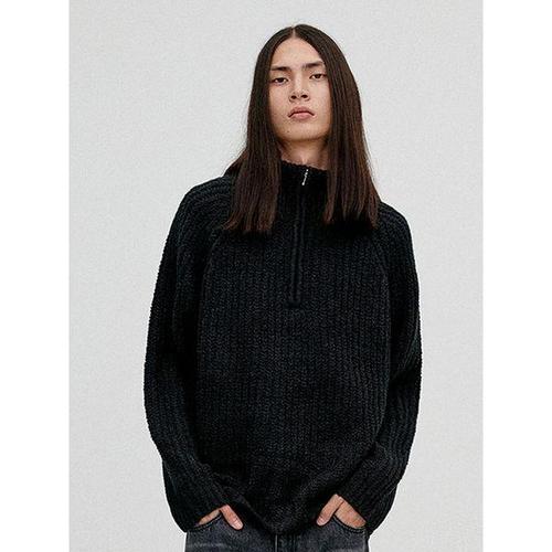 [비바스튜디오]부클 하프 니트 집업 - BLACK