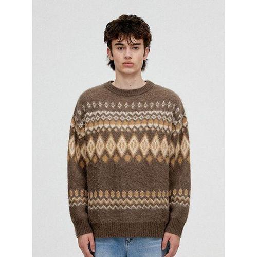 [비바스튜디오]노르딕 알파카 라운드 니트 - BROWN