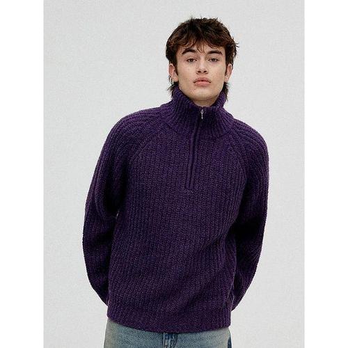 [비바스튜디오]부클 하프 니트 집업 - PURPLE