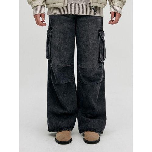 [비바스튜디오]와이드 카고 데님 팬츠 - BLACK