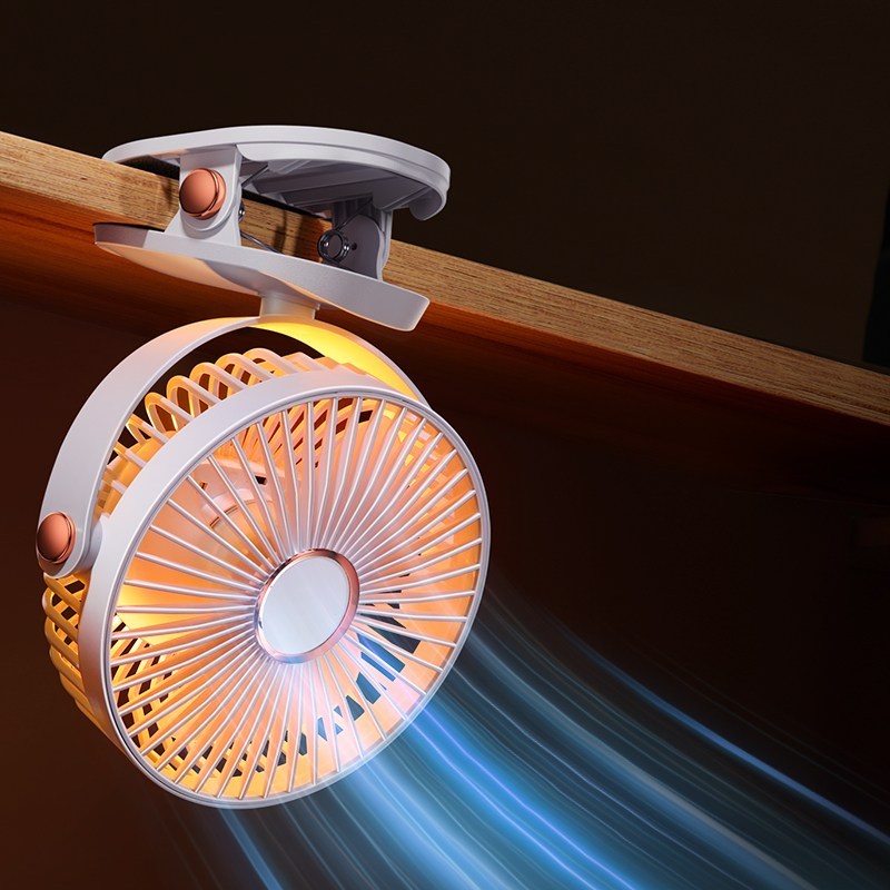 TEMU 화이트 무선 선풍기 감성적인 무드등 5단계 풍속 조절 클립형 벽걸이 가능 USB 충전식 여행 캠핑 사무실 야외 활동 필수템|무드등