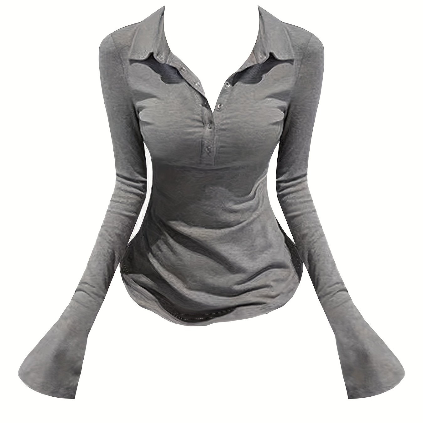 TEMU 패션 Y2K 여성 티셔츠 | 편안한 긴소매, 라펠 칼라, 단색, 롱 기장, 가을/겨울용 다용도 출퇴근 상의